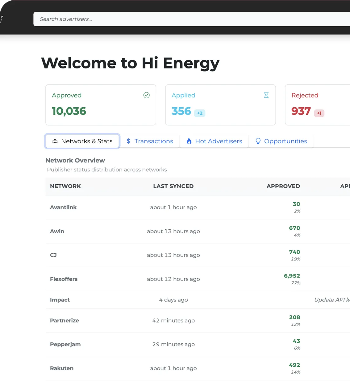 Established direct relationships with top advertisers and networks across CJ, Impact, Rakuten, Awin and more